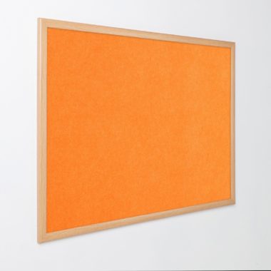 Eco-friendly noticeboards in a Light Oak effect frames with a choice of 11 eco-colour infills, constructed from recycled and sustainable materials. Contoured 35mm wide frame. Boards can be mounted portrait or landscape with concealed fixings provided. Acoustic properties to help reduce noise, up to NRC 0.8.