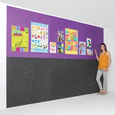 Fire retardant Eco-Colour frameless noticeboards – fully tested to European Reaction to Fire Test. Can be butted up together to create full walls of noticeboards.