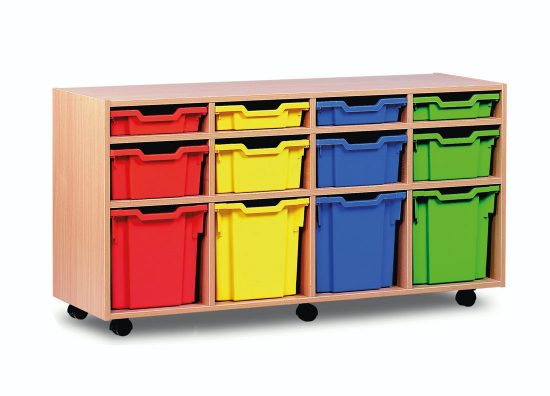 Assorted tray storage unit 4 Jumbo, 4 deep & 4 shallow trays. Extra castors on larger mobile units which carry more weight.