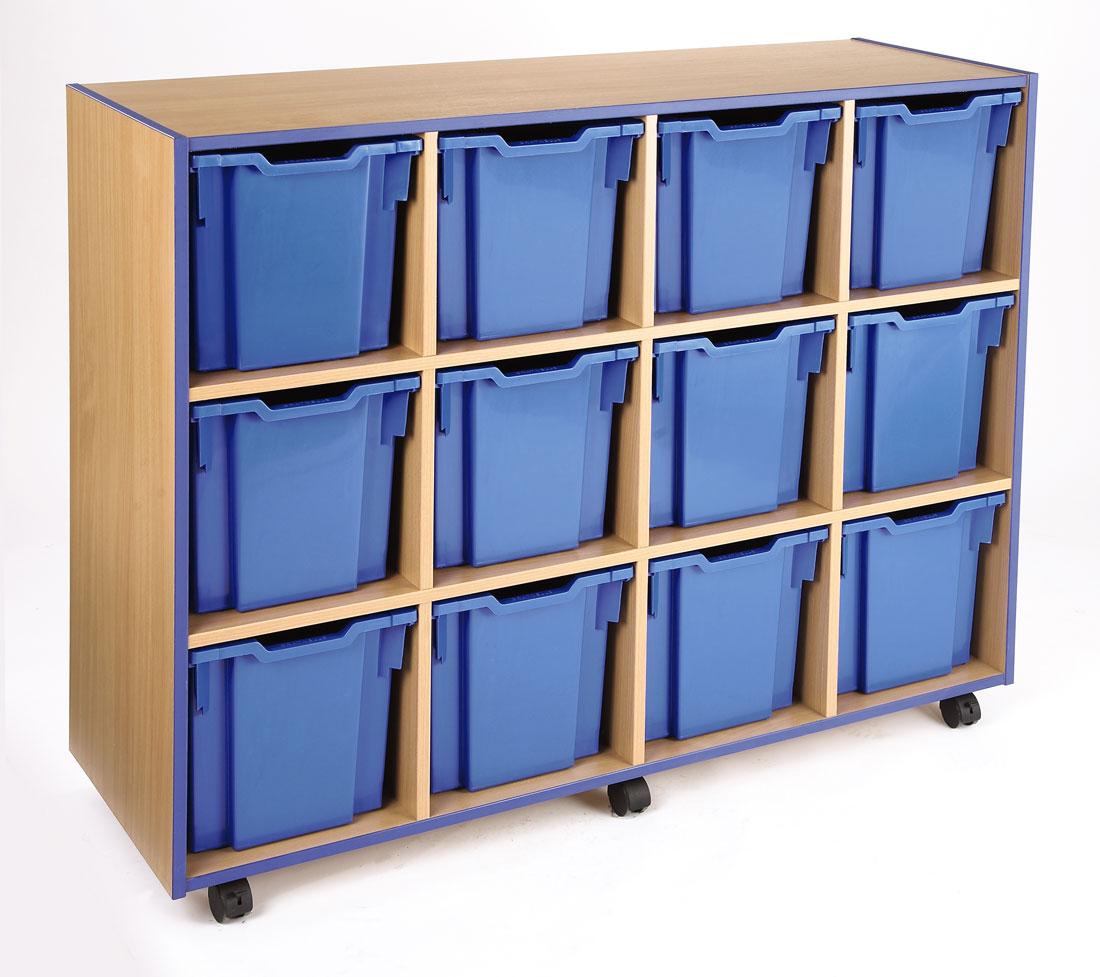Coloured Trim Beech Finish Tray Units - Furniture For Schools