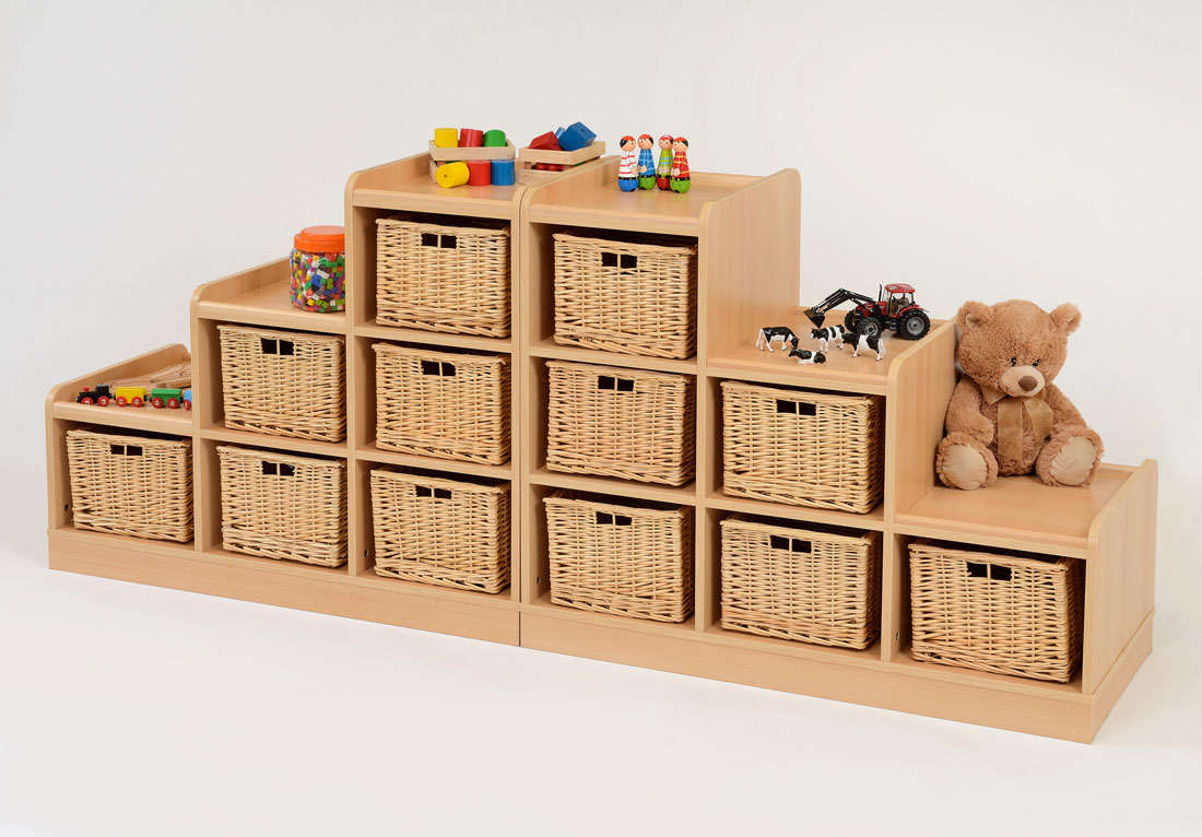 feature to all the units. This prevents items rolling off the tops, creating a useful playful as well as storage feature.
