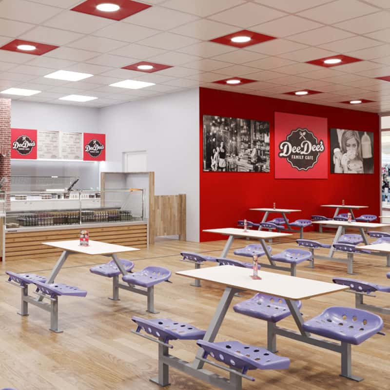 Fast food unit with choice stylish lipped back stool seats or full back chair shells