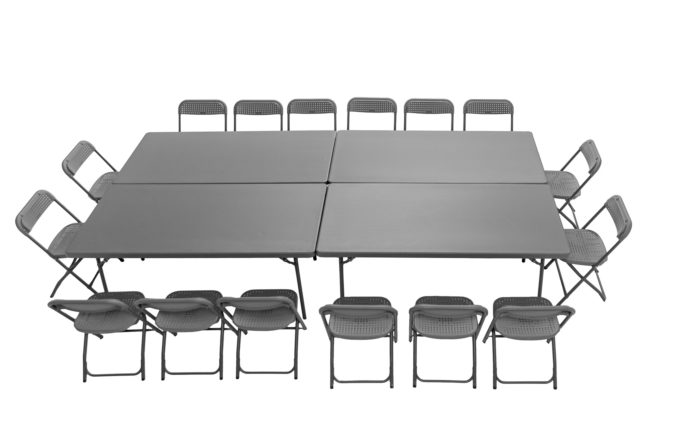 Durable and versatile folding table with improved folding mechanism.  Choice of three lengths with mobile trolley for storage when not in use.