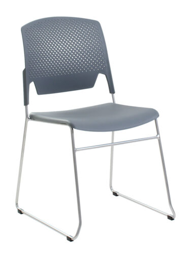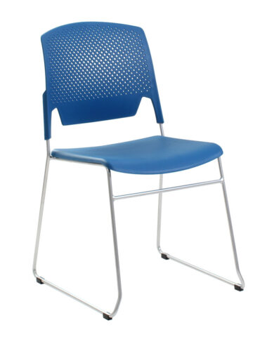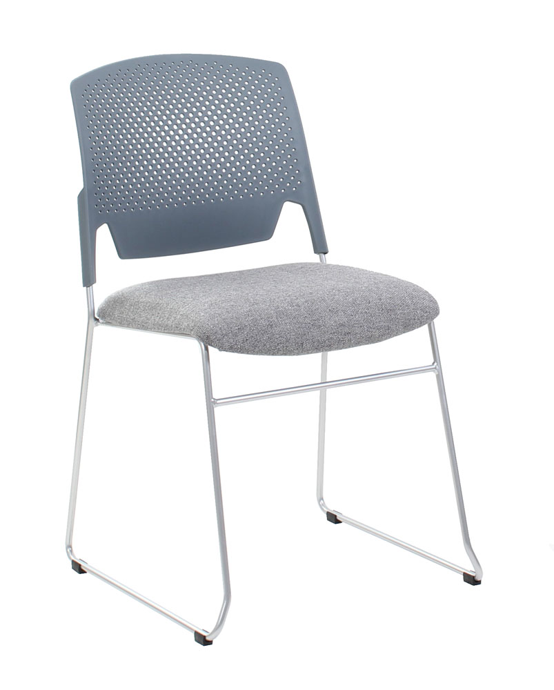 Multi-purpose sturdy chrome sled frame poly chair with upholstered seat pad to suit many applications.