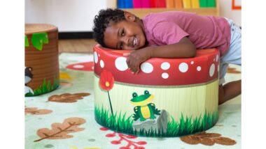 Forest Friends themed pouf seat, can be used with the forest friends corner carpet and alongside the other natural world soft seating range