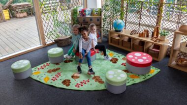 Toadstool design soft seats which can be used with the natural world carpets and alongside the rest of our natural world soft seating range.