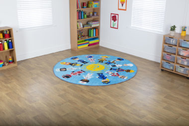 Thick and soft 2m diameter circular carpet offers an opportunity to challenge stereotypes and help children discuss professions that they may recognise, aspire to or interact with.