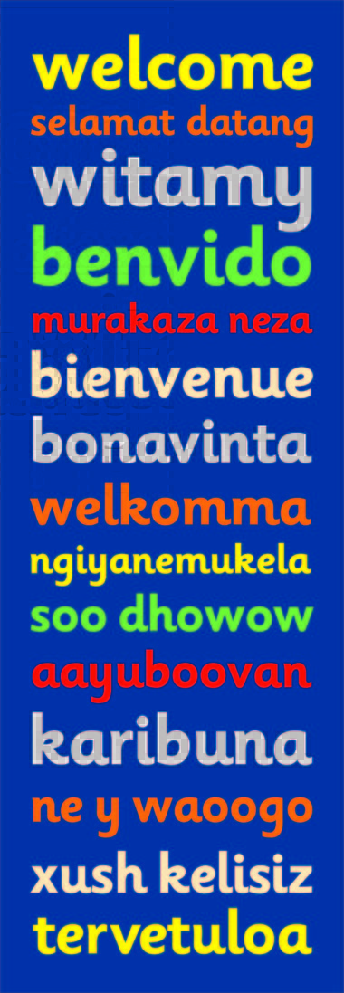Complimentary carpet runner 3m x 1m features the word ‘Welcome’ in a variety of languages and colours and is available as a separate item or supplied free with the large carpet